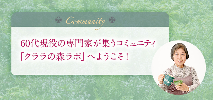 結婚していようといまいと、ひたむきに仕事に挑戦し、人生の選択も自分自身で選び続けてきた50代女性が、クララの森ラボの構成メンバーにふさわしいと思いませんか。