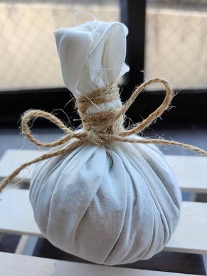 数種類のハーブを布で包み、蒸気に当ててからカラダに当てると緊張が解けます